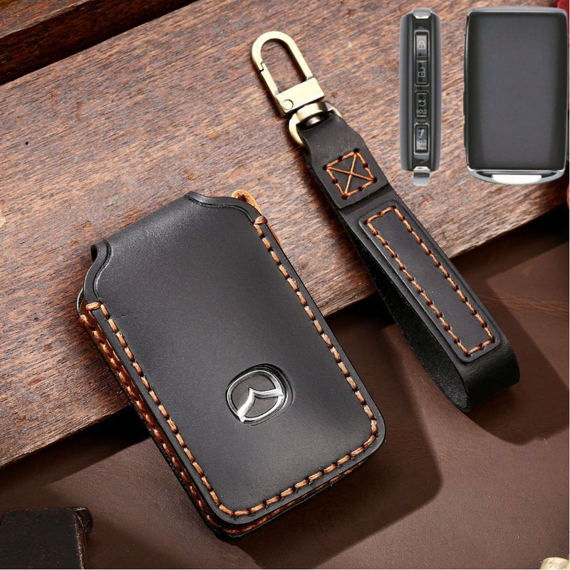 Mazda Handcrafted Genuine Leather Folding Car Key Fob Case Cover For CX-5, CX-3, CX-30, CX-9